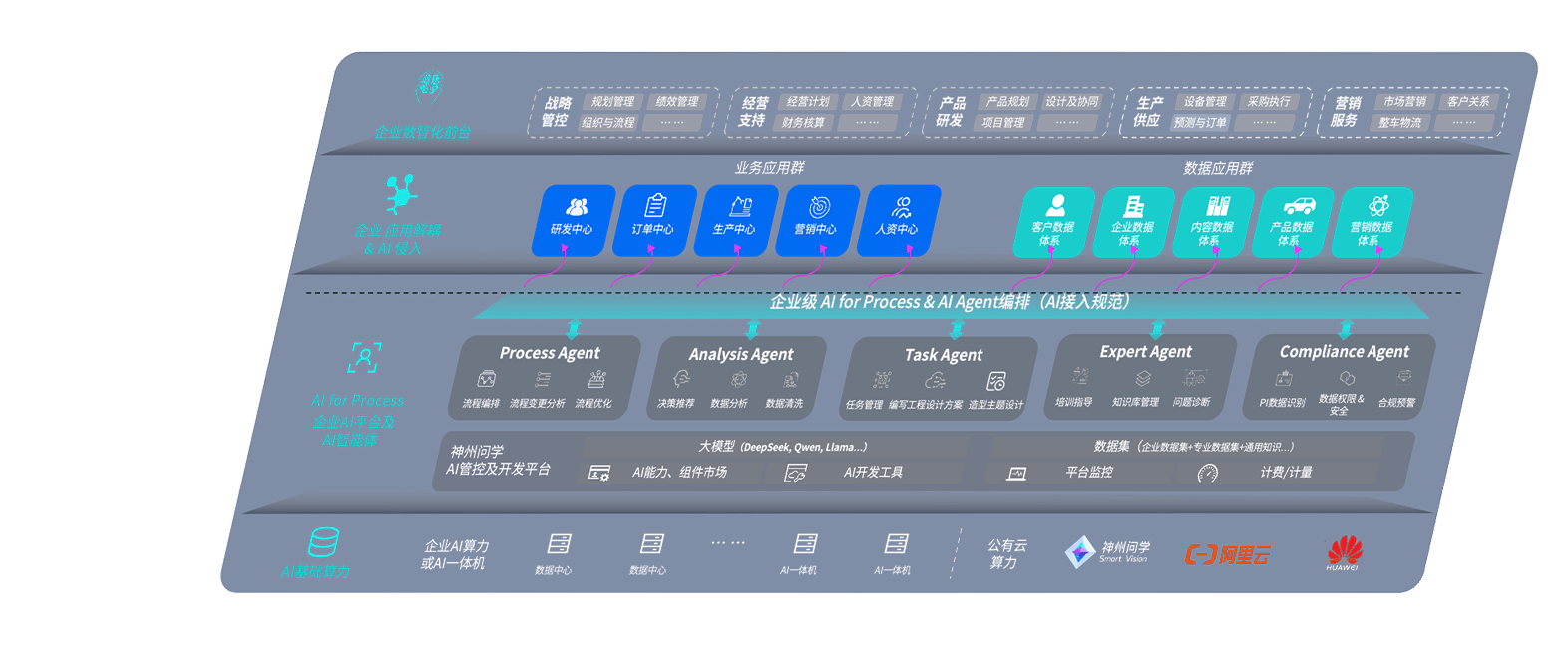 端到端的一站式AI工作空间深度融合了从企业战略规划到日常经营的全流程业务板块,,,,定向解决车企内部领域多、、、、部门多、、、、链条长、、、场景碎片化等难题,,,支持车企快速构建以AI为核心的生产力写作体系,,,实现任务执行与AI能力的无缝集成与交互